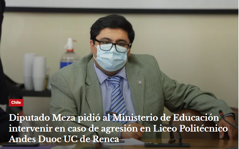 Diputado Meza pidió al Ministerio de Educación intervenir en caso de agresión en Liceo Politécnico Andes Duoc UC de Renca